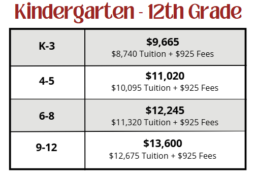 Tuition Rates for the 26/27 school year: